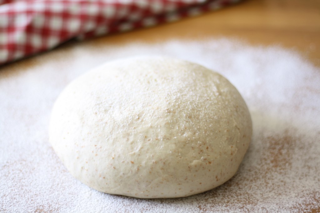 Limpiamos bien la superficie de una mesa, espolvoreamos con harina y formamos una bola con la masa que dejaremos reposar cubierta de un paño limpio durante una hora.