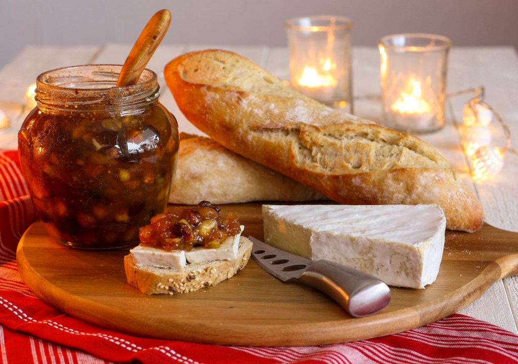 Cortamos los higos, las pasas, los albaricoques y los dátiles en trocitos y los introducimos en una cacerola grande junto con la mezcla del jugo de membrillo y la manzana/pera. Añadimos el azúcar y el resto de los ingredientes EXCEPTO las avellanas, almendras y nueces. Llevamos a ebullición y quitamos espuma en caso necesario. Hervir durante unos 10 minutos removiendo con frecuencia. Añadimos los frutos secos y dejamos hervir durante 5 minutos más.